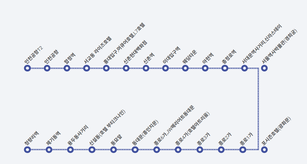 다양한 출발지: 인천공항 버스는 서울의 주요 지역뿐만 아니라, 경기와 인천 등 다양한 출발지를 포함하고 있습니다. 따라서 출발지와 가까운 곳에서 버스를 탈 수 있어 이동이 편리합니다.